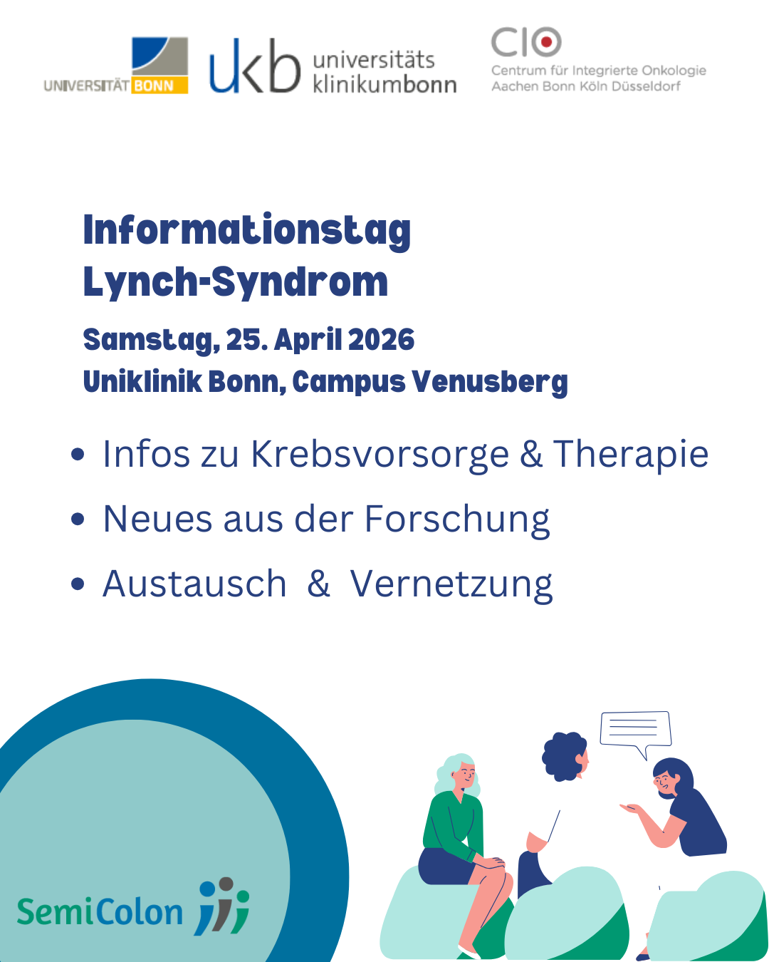 Weitere Infos und das ausführliche Programm der Veranstaltung >> Flyer Informationstag Lynch-Syndrom